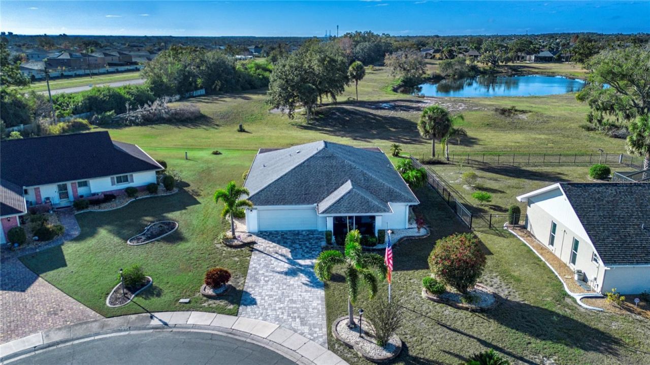 Welcome to this inviting home in Sun City Center, tucked away on a quiet cul-de-sac in the desirable St. Andrew's neighborhood. Situated on a generous lot with no backyard neighbors, this beautifully maintained residence offers both privacy and a warm, comfortable floor plan designed for easy Florida living. A charming screened porch welcomes you - the perfect place to enjoy your morning coffee or unwind at the end of the day. Inside, the spacious living room features attractive laminate flooring and flows seamlessly into a bright 12x12 dining area, conveniently located just off the efficiently designed kitchen. The kitchen provides abundant cabinetry and generous counter space, making meal preparation both practical and enjoyable. Just beyond the kitchen is a large utility room complete with washer and dryer, scrub sink, and additional counter space for hobbies or projects. The full two-car garage includes a complete wall of storage and an extra refrigerator - ideal for organization and convenience. The comfortable family room opens into a huge enclosed lanai that runs the full length of the home. This under-air space offers endless possibilities - a den, computer room, hobby space, or creative studio. With its pretty, private view and no rear neighbors, it truly feels like a peaceful retreat. Electronic programmable blinds allow you to adjust natural light throughout the day with ease, adding both comfort and ambiance to this remarkable space. The primary suite features an updated ensuite bath complete with a heated towel rack for a touch of everyday luxury. Thanks to the highly desirable split-bedroom floor plan, guests will appreciate their own private bedroom and adjacent full bath with tub and shower. Located near churches, restaurants, and shopping, this well-cared-for home offers the perfect blend of privacy, flexibility, and relaxed Florida living.